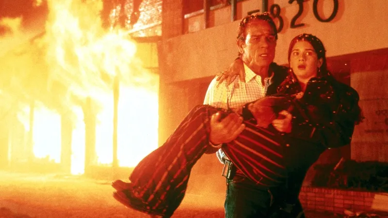Need I mention that, at some point in the movie, Tommy Lee Jones is separated from his daughter, Gaby Hoffman? Need I further mention that Tommy Lee Jones restores the nuclear family unit by literally outrunning a collapsing skyscraper with his daughter in his arms? I need not. Like the iambic pentameter of a sonnet, the disaster movie has its traditional rhythms, and Volcano respects the form.