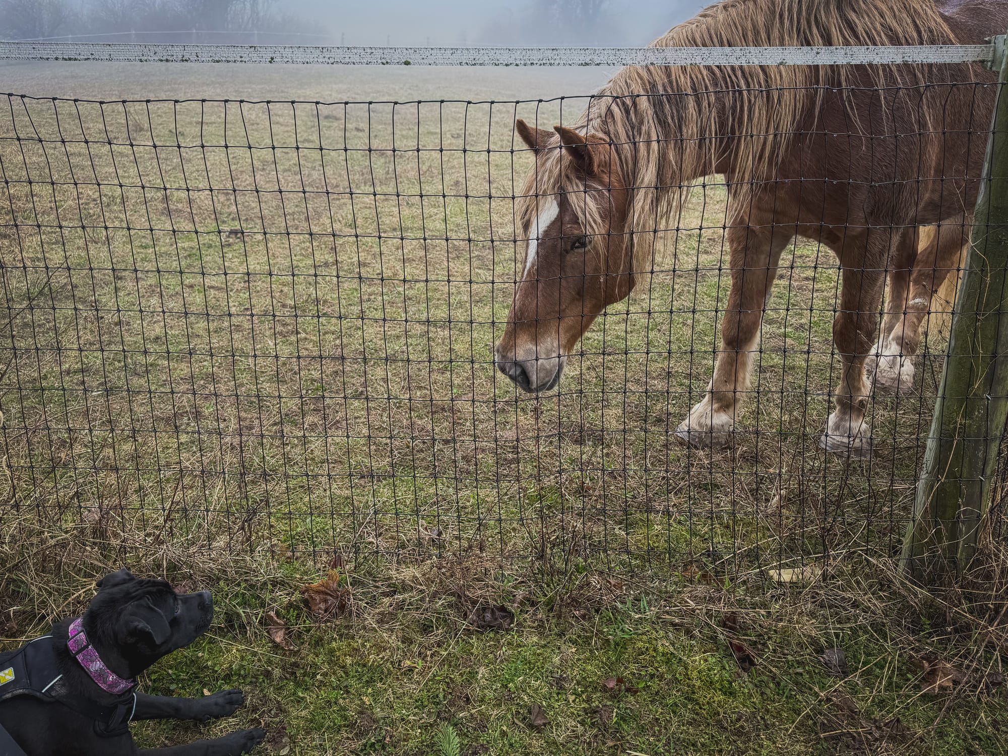 He walked over to me, burrowed into my coat, and hid on my lap again. He just kept doing it, every time I moved. My daughter reminds me that I had brought treats to introduce myself to the dogs, and that I had been carrying them in my coat on the ride over. But the treats weren’t on me, at the time, and he could have gone over to someone else to get them.