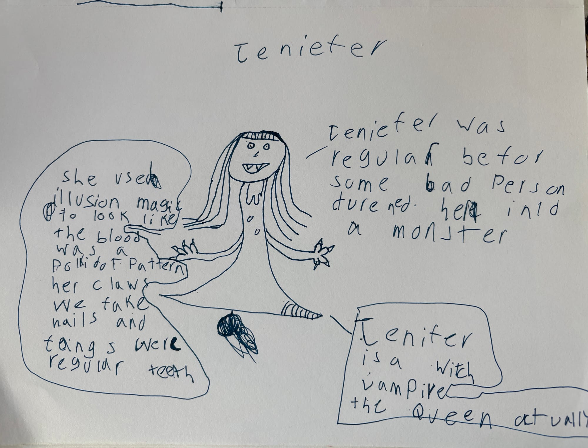Every night, I read my child two chapters of a book, and she draws me monsters. These are their stories.