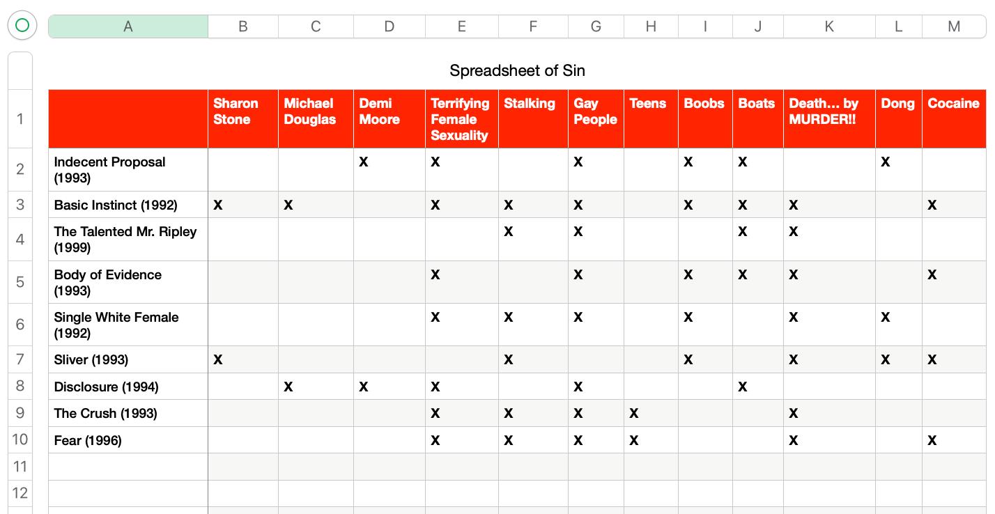 I can definitely remember hearing about thrillers like Basic Instinct or Disclosure or Indecent Proposal, but they were made for adults, who had marriages to break up and jobs to lose. Fear is the first movie I can remember kids my age watching. The erotic thriller as a whole underwent heavy teen-ification in the mid-90s. For the first half of the decade, the genre was almost exclusively framed through the viewpoints of white cishet Boomer men, with a few neurotic career women thrown in for balance. Yet by the end of the decade, we’re seeing erotic thrillers with all-teen casts — your Swimfans, your Cruel Intentionses — and this continues today with shows like Euphoria, whose claim to edginess arises from the supposedly scandalous fact that the characters doing drugs and having sex are underage.