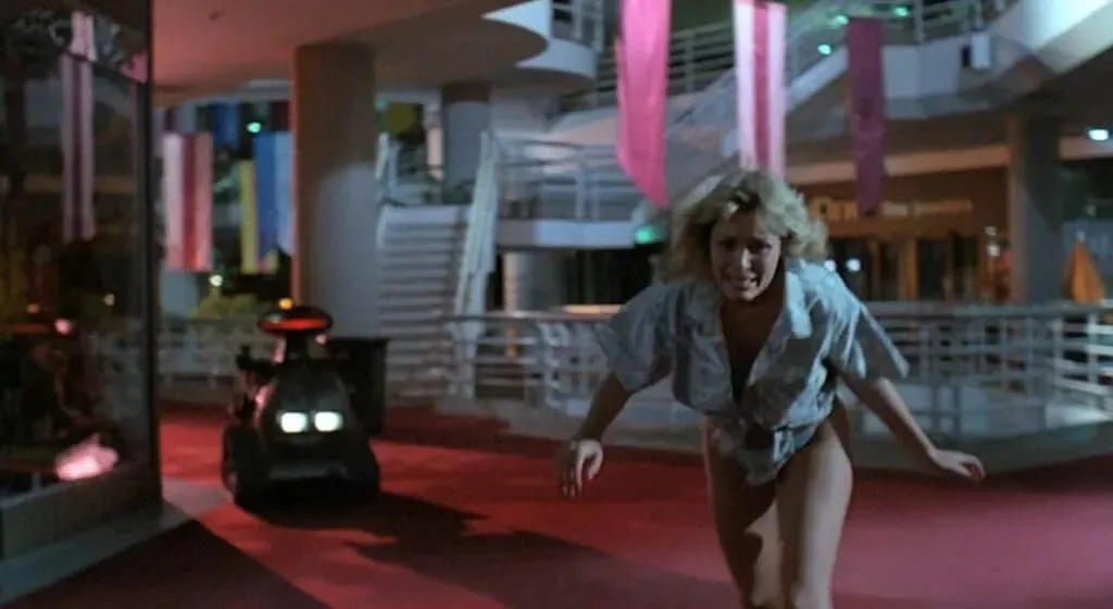 What happens? Four teens convene for that most all-American of teenage activities — an after-hours sex party in the furniture store at a local mall. (“We’ve all been there,” he says, in the tone of a man who has definitely had sex.) Unbeknownst to them, the mall has unleashed a new fleet of robot security guards, and the punishment for loitering is…. Death!!!
