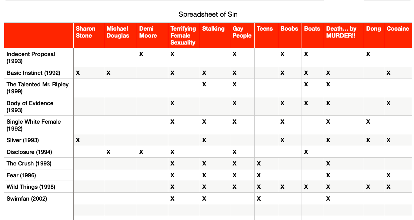 Now: I’m not sure at what point in the process it was decided that the pool sex movie had to be for teenagers, or when they decided it had to be Fatal Attraction, but transposed to high school, so it made even less sense. But all of these decisions were, in fact, made, and endorsed by Erika Christensen, so let’s gin up the old spreadsheet: